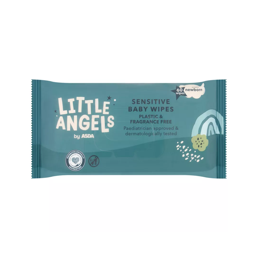 (PREORDER) LITTLE ANGELS by ASDA 60 Newborn Sensitive Baby Wipes Plastic & Fragrance Free